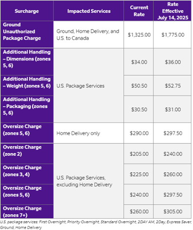 July 14: Stricter penalties will apply for international package and freight shipments that exceed size and weight limits, including new Unauthorized Package and Freight Charges.