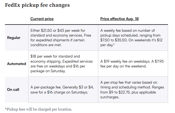 August 18: A new pricing structure for parcel pickups in the U.S. and Canada will be introduced.