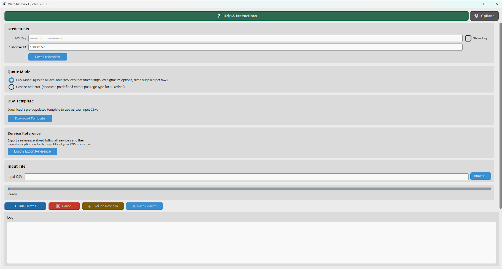 You will need your WebShip API Key and Customer ID to use the tool — both can be found in WebShip accounts under Settings → API Key.