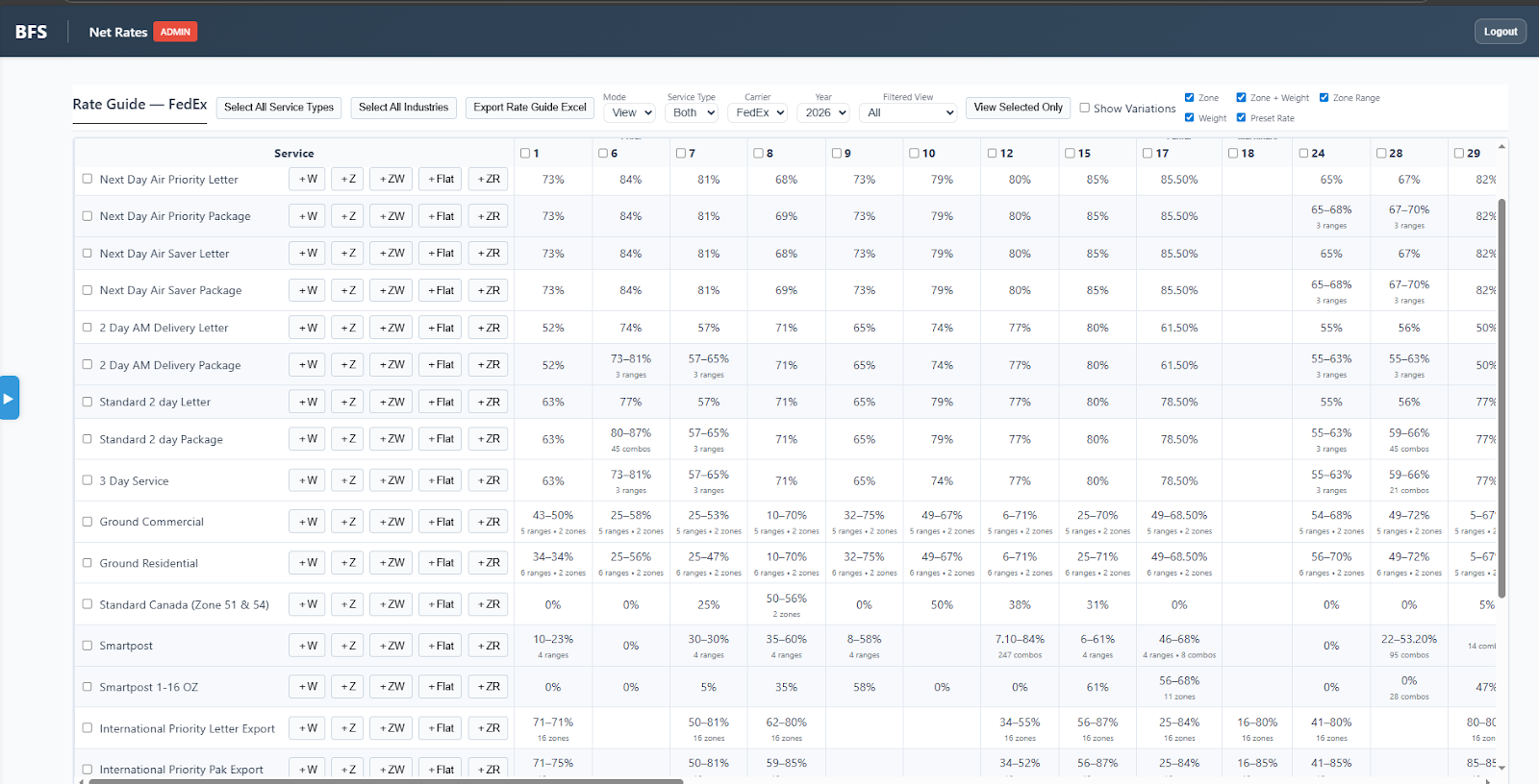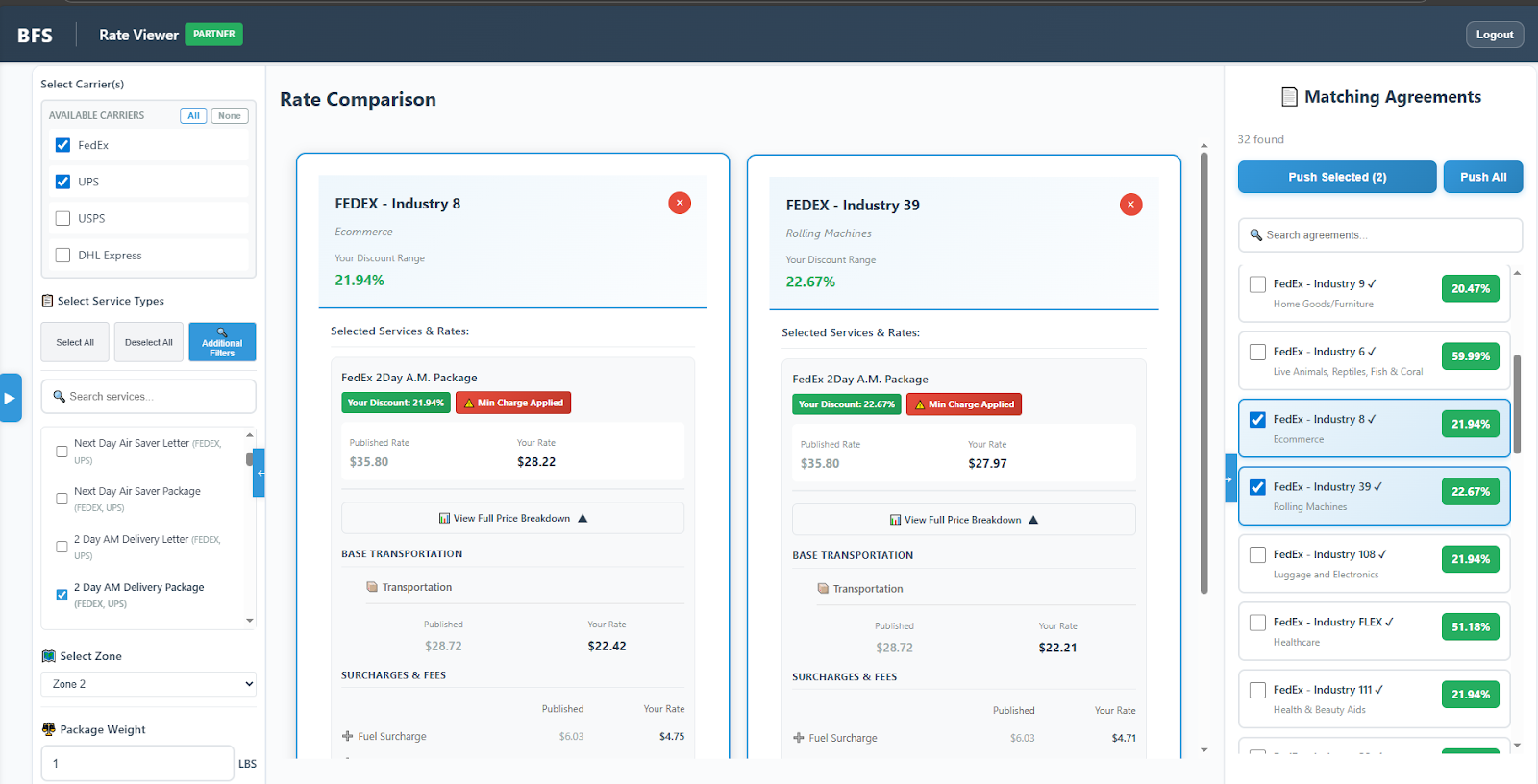 This led us to deconstruct the Rate Guide to its core, and rebuild it in a way where the upkeep is now scalable, where Net Rates can be generated in seconds, and most importantly for the Partner, the ease of navigation between all the Industry Accounts will be an absolute breeze. This will be the very first feature that will be made available to you on the new BF Partner Portal, and here is a sneak preview of what it will look like: